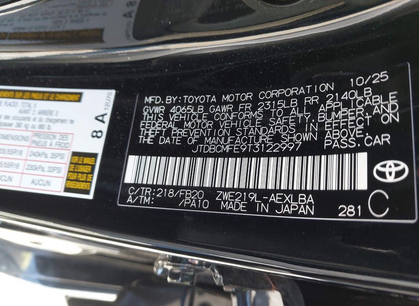 - VIN: JTDBCMFE9T3122997