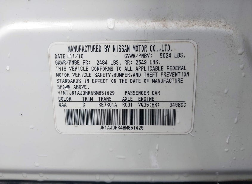 - VIN: JN1AJ0HR4BM851429