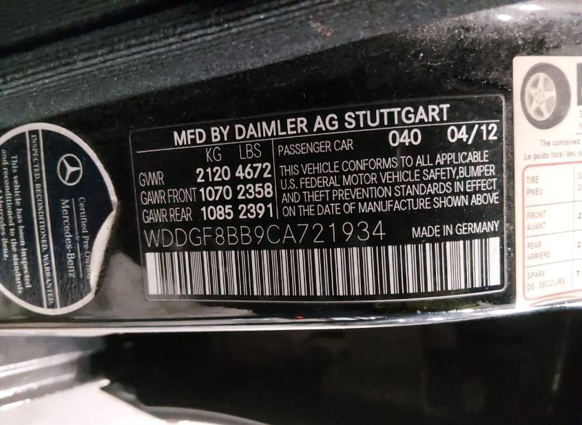 - VIN: WDDGF8BB9CA721934