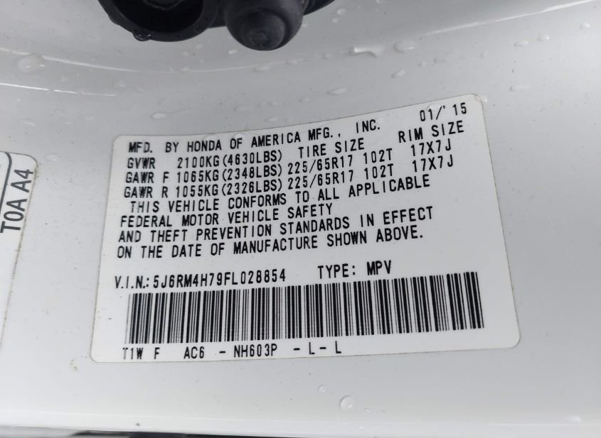 - VIN: 5J6RM4H79FL028854