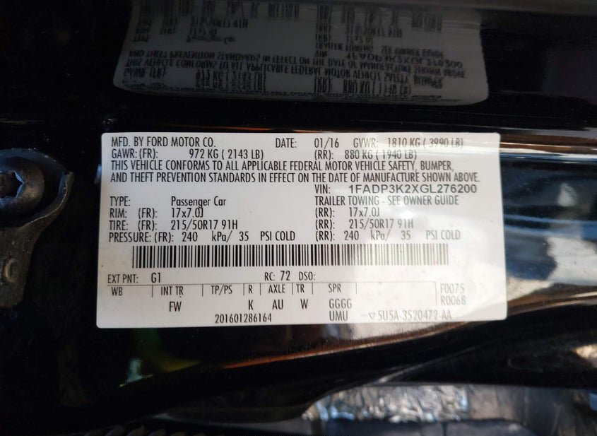 - VIN: 1FADP3K2XGL276200