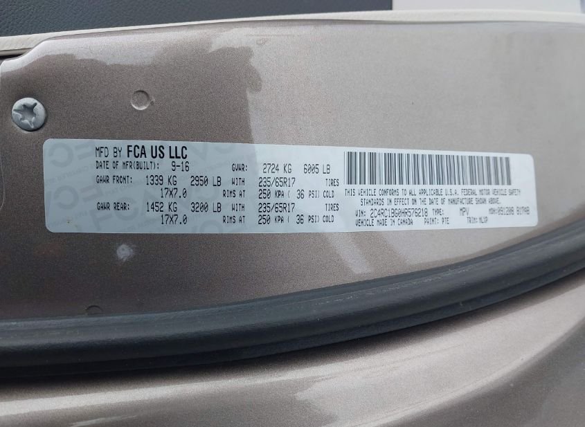 - VIN: 2C4RC1BG0HR576218