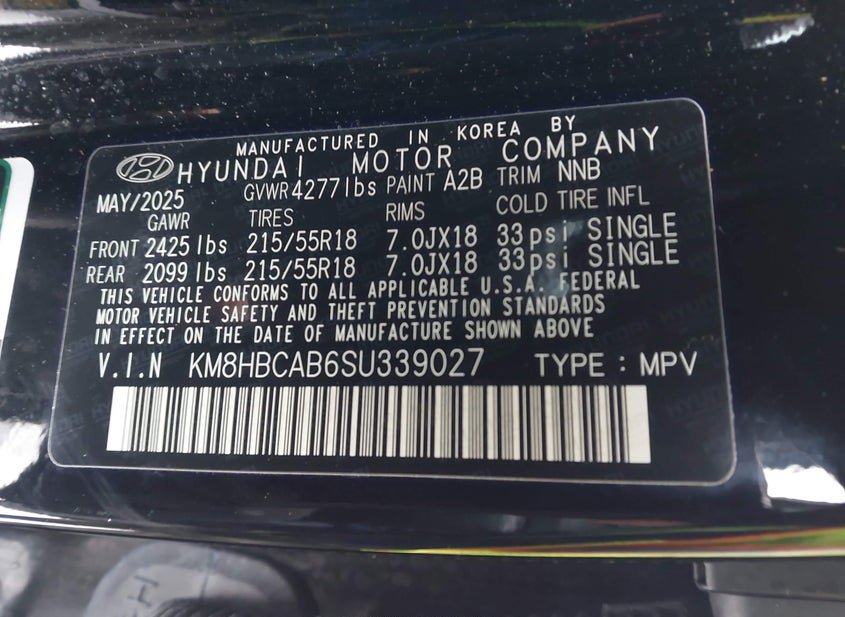 - VIN: KM8HBCAB6SU339027