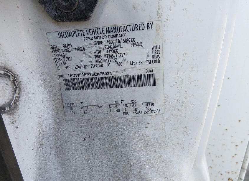 - VIN: 1FDWF36P16EA78034