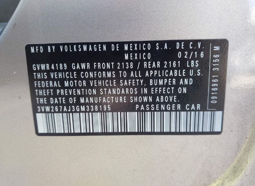 - VIN: 3VW267AJ3GM338195