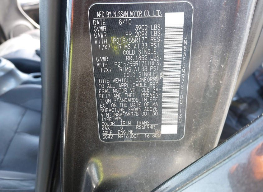 - VIN: JN8AF5MR7BT001130
