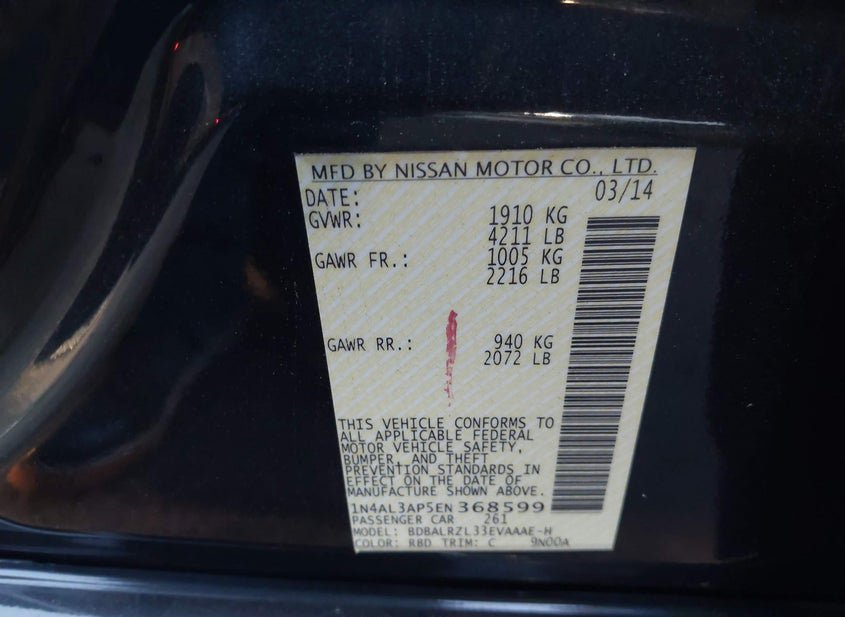 - VIN: 1N4AL3AP5EN368599