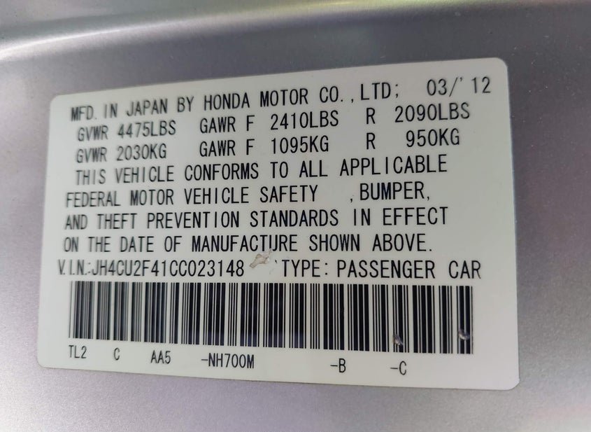 - VIN: JH4CU2F41CC023148