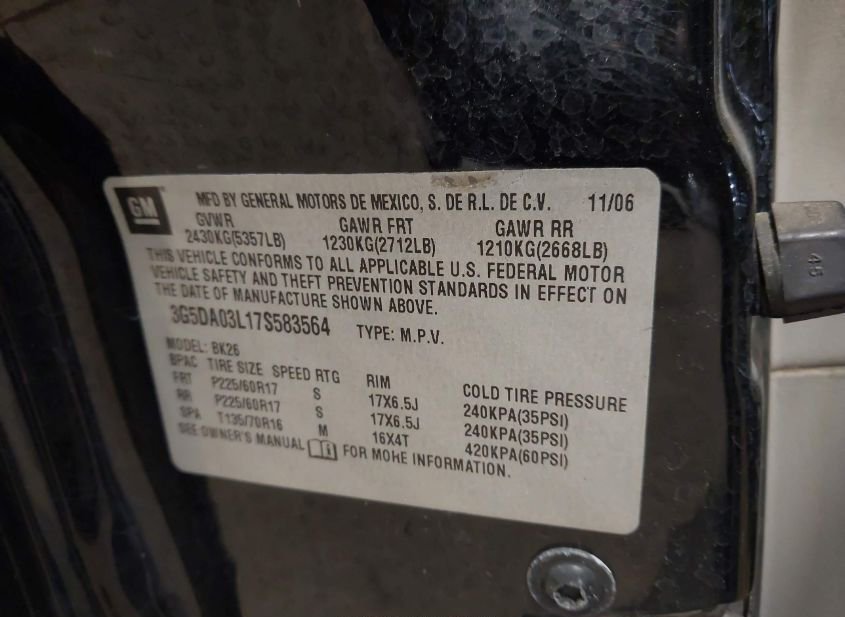 - VIN: 3G5DA03L17S583564