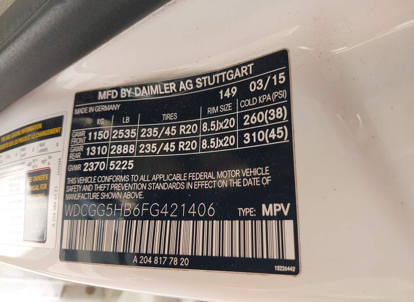 - VIN: WDCGG5HB6FG421406