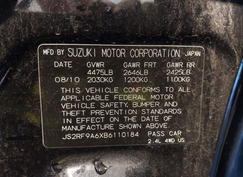 - VIN: JS2RF9A6XB6110184