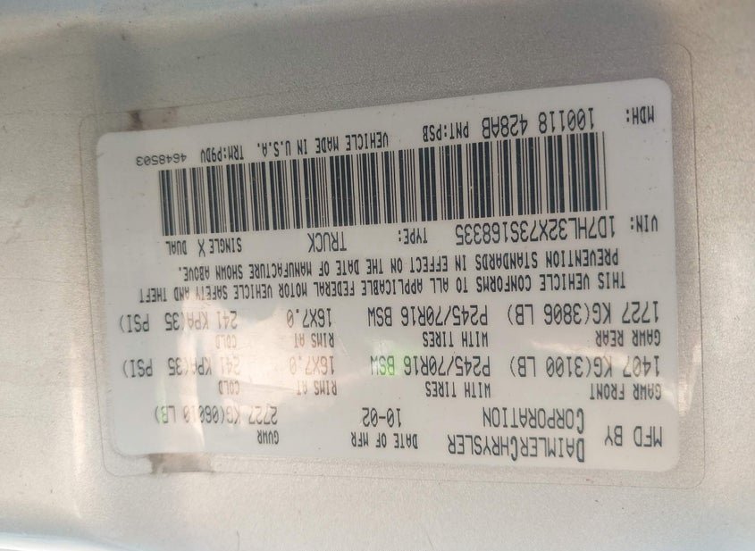 - VIN: 1D7HL32X73S168335