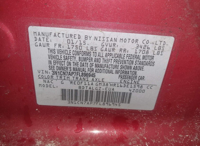 - VIN: 3N1CN7AP7FL896945