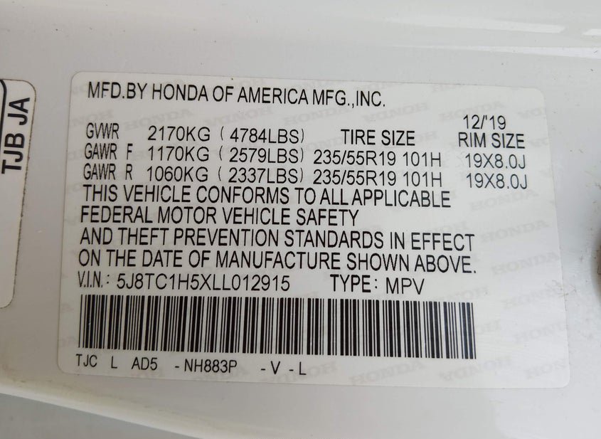 - VIN: 5J8TC1H5XLL012915