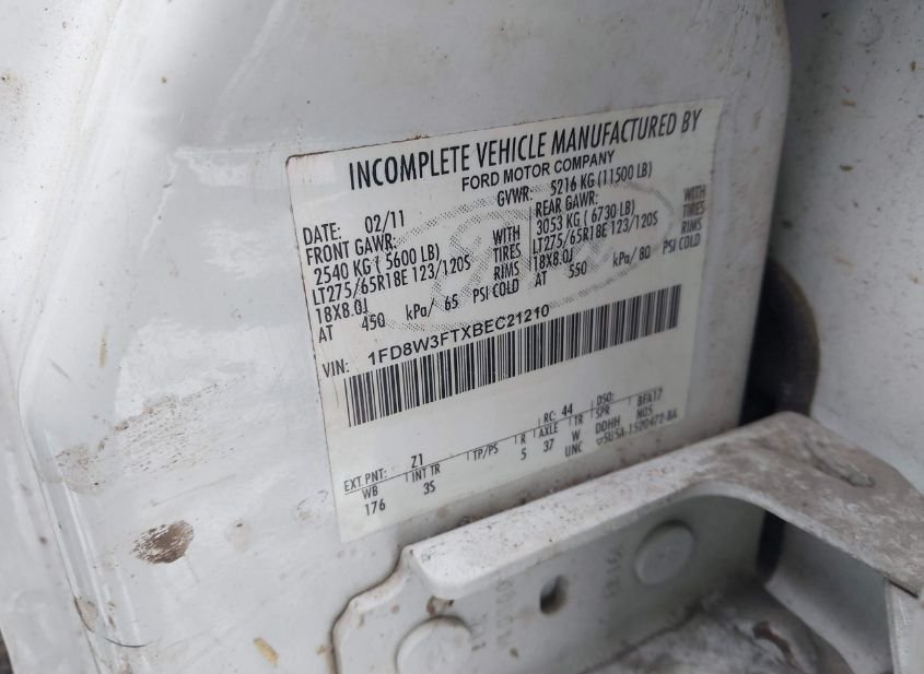 - VIN: 1FD8W3FTXBEC21210