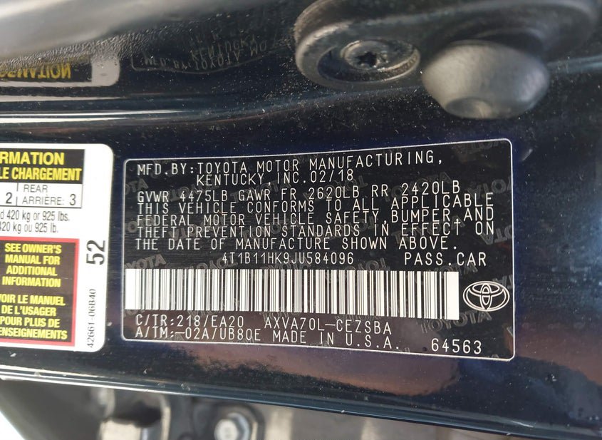 - VIN: 4T1B11HK9JU584096