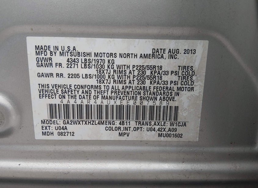 - VIN: 4A4AR4AUXEE007589