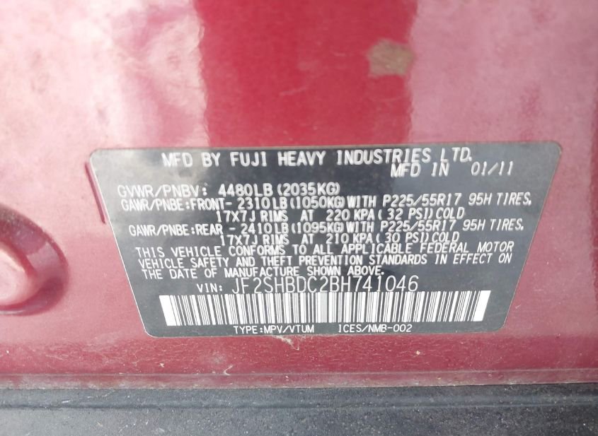 - VIN: JF2SHBDC2BH741046
