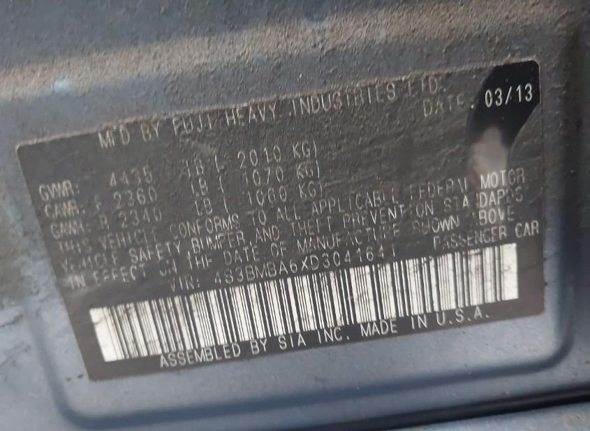 - VIN: 4S3BMBA6XD3041641