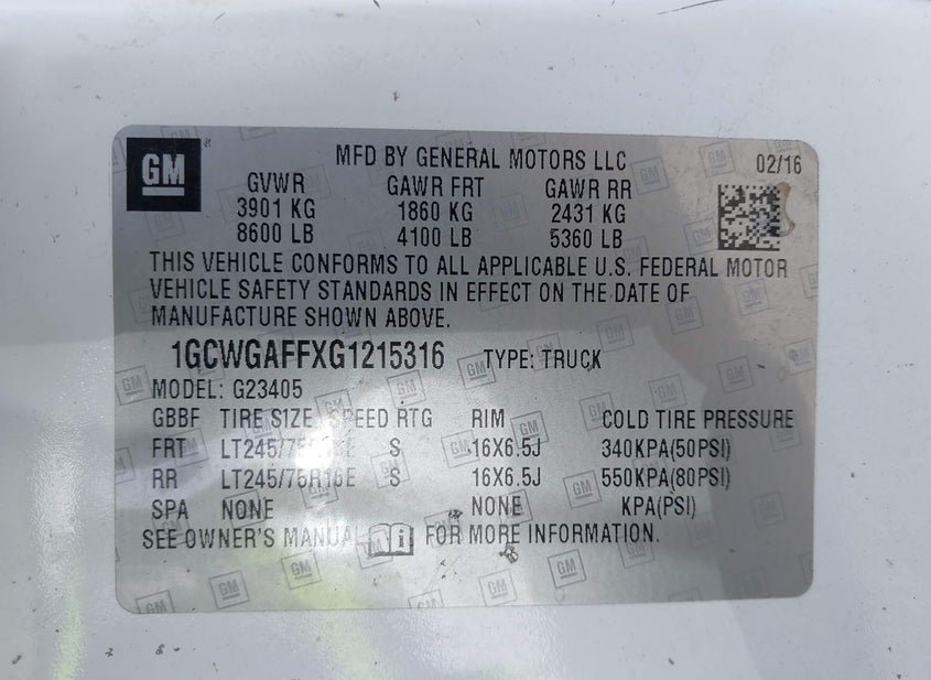 - VIN: 1GCWGAFFXG1215316