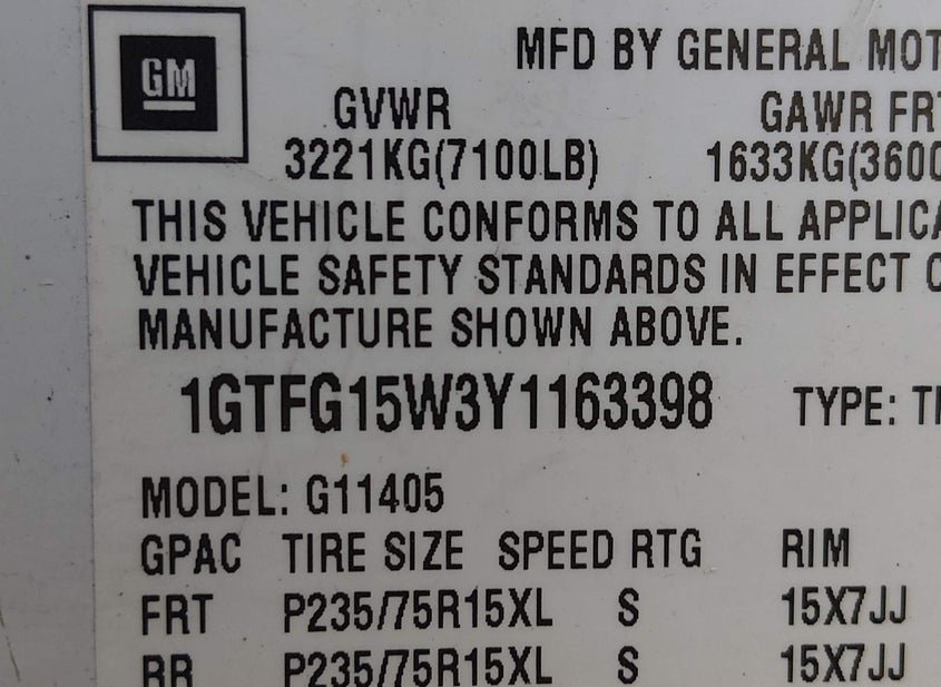 - VIN: 1GTFG15W3Y1163398