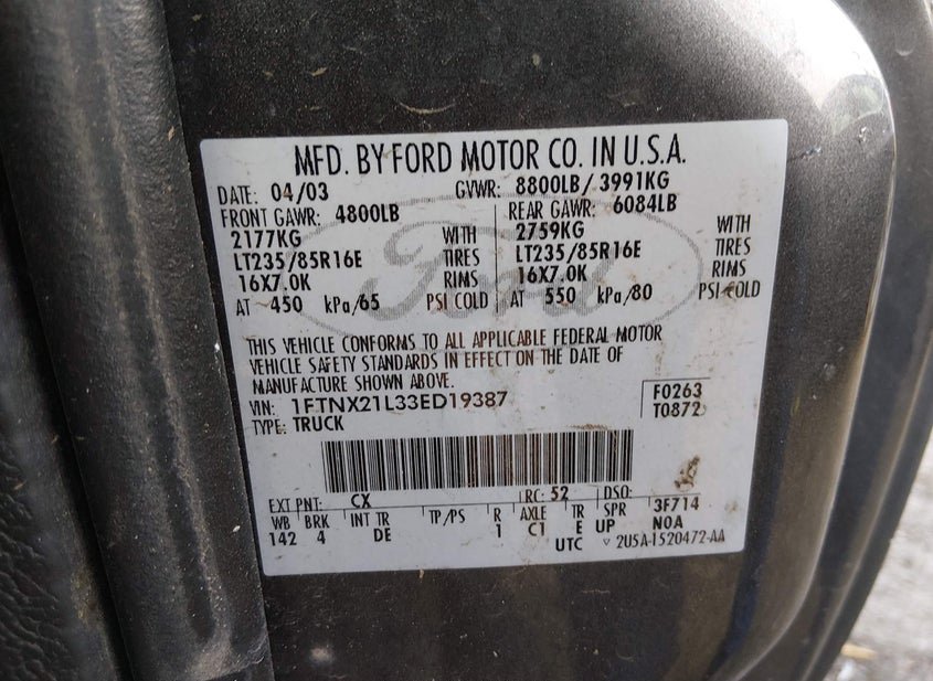 - VIN: 1FTNX21L33ED19387