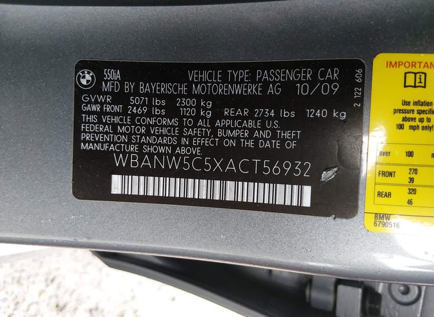 - VIN: WBANW5C5XACT56932