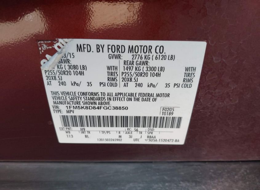- VIN: 1FM5K8D84FGC38850
