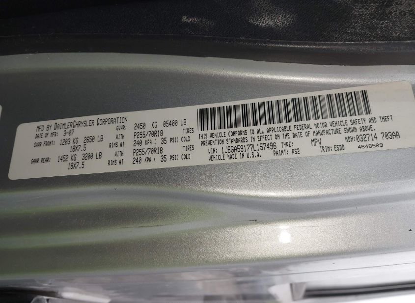 - VIN: 1J8GA59177L157496
