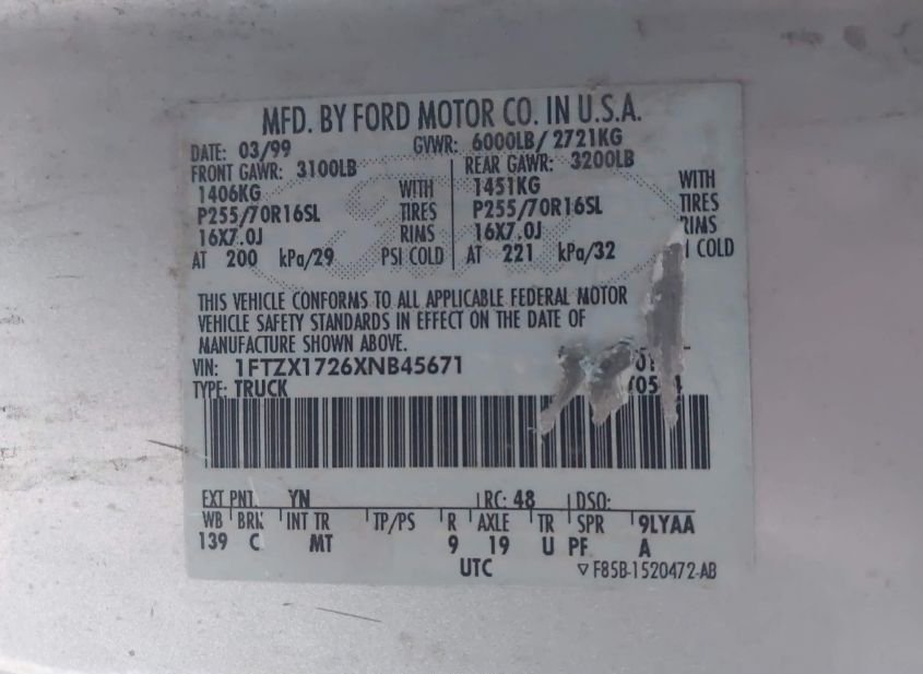 - VIN: 1FTZX1726XNB45671