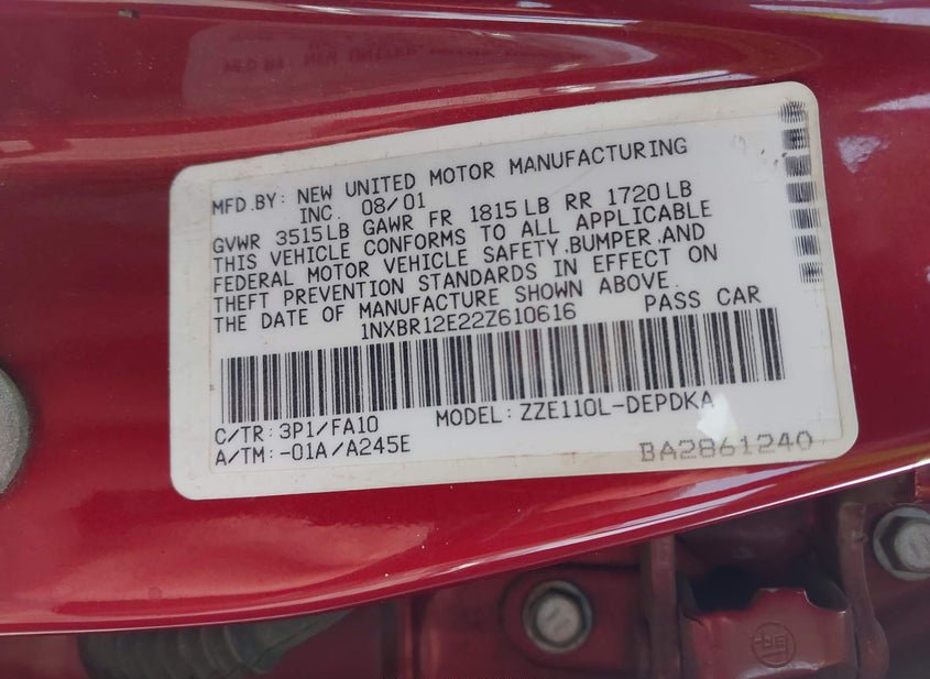 - VIN: 1NXBR12E22Z610616