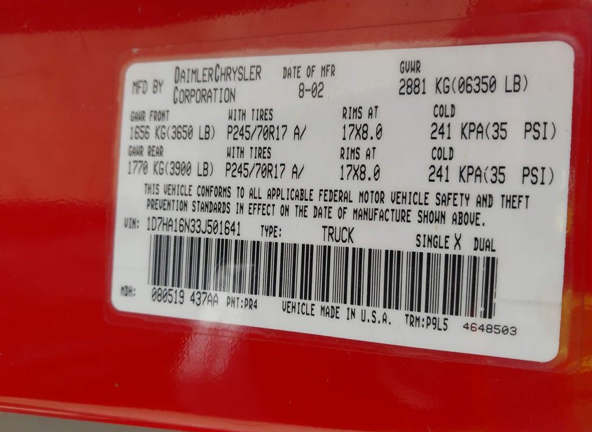- VIN: 1D7HA16N33J501641