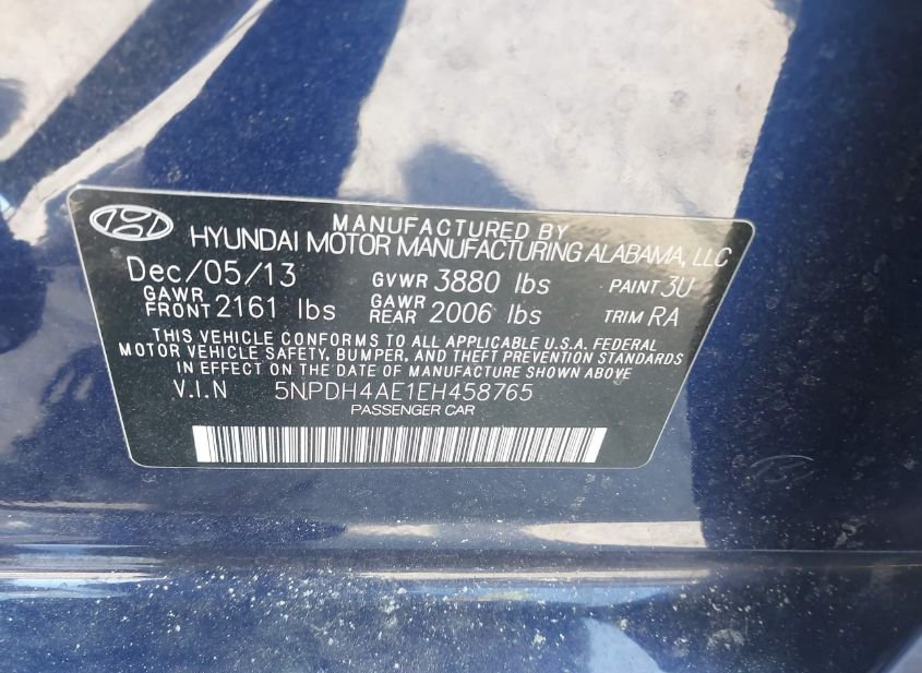 - VIN: 5NPDH4AE1EH458765