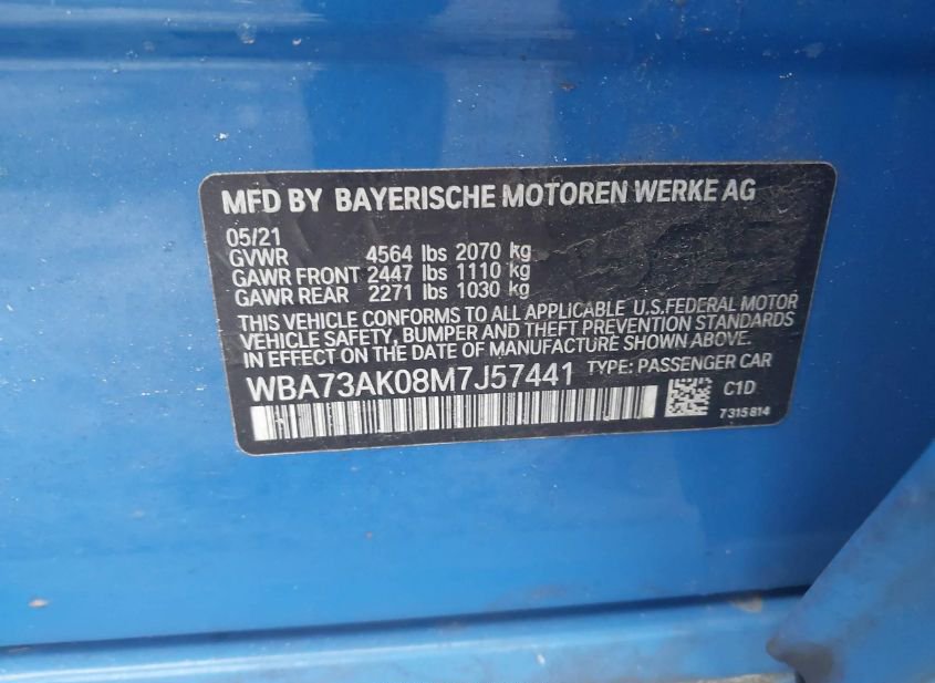 - VIN: WBA73AK08M7J57441