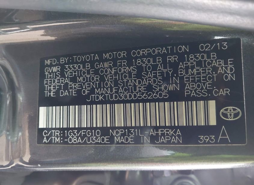 - VIN: JTDKTUD30DD562605