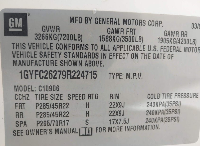 - VIN: 1GYFC26279R224715