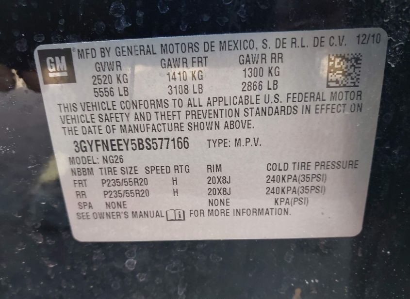 - VIN: 3GYFNEEY5BS577166