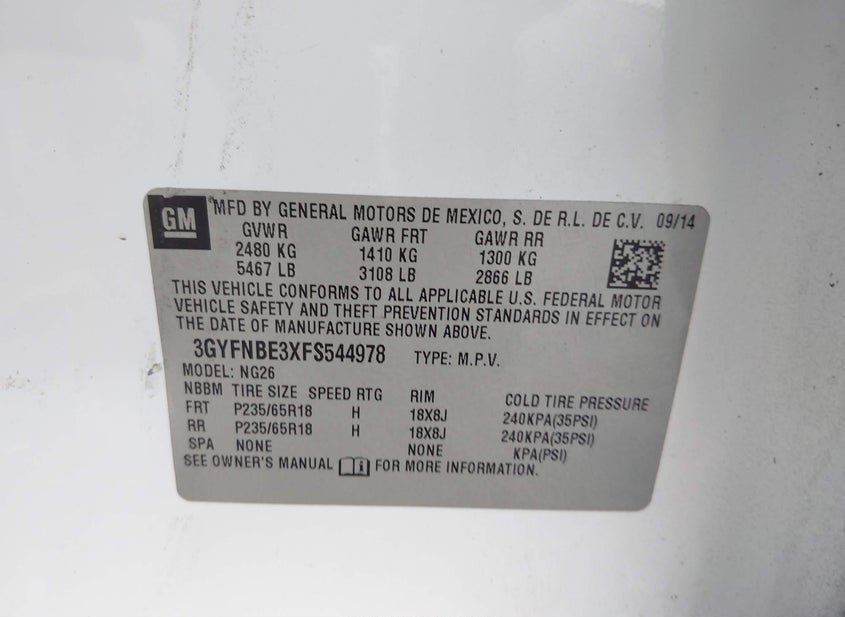 - VIN: 3GYFNBE3XFS544978