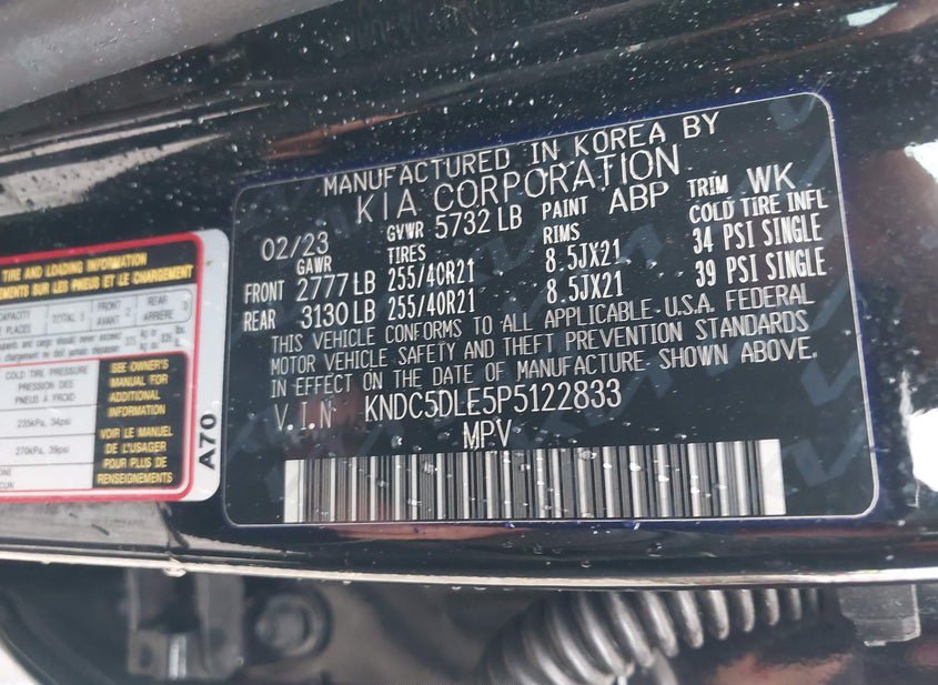 - VIN: KNDC5DLE5P5122833