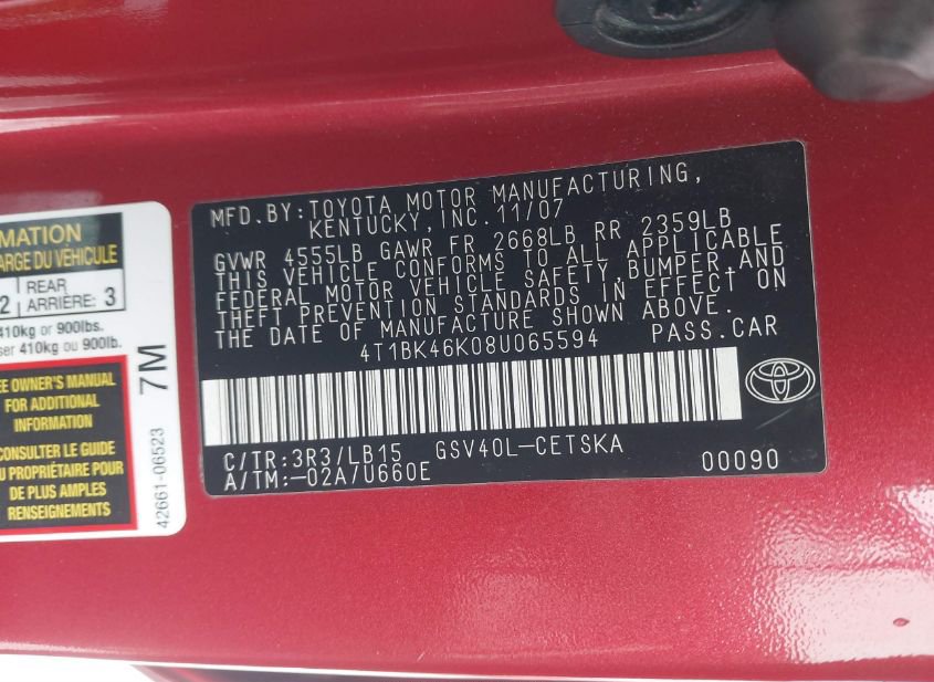 - VIN: 4T1BK46K08U065594