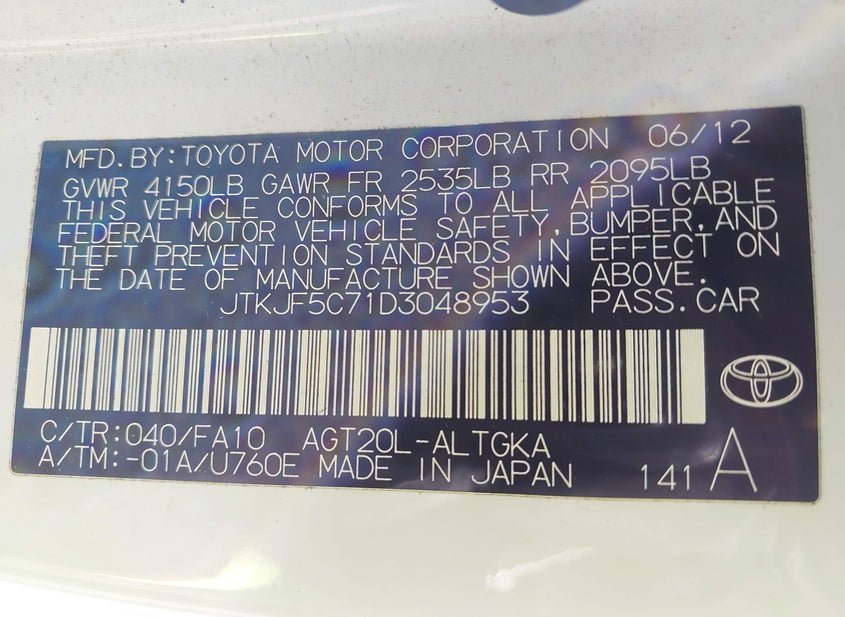 - VIN: JTKJF5C71D3048953