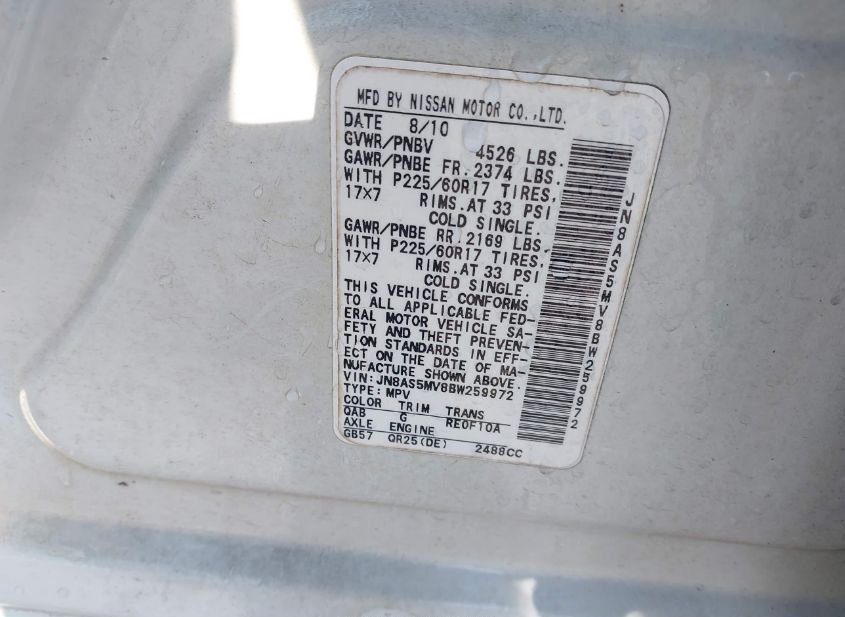 - VIN: JN8AS5MV8BW259972