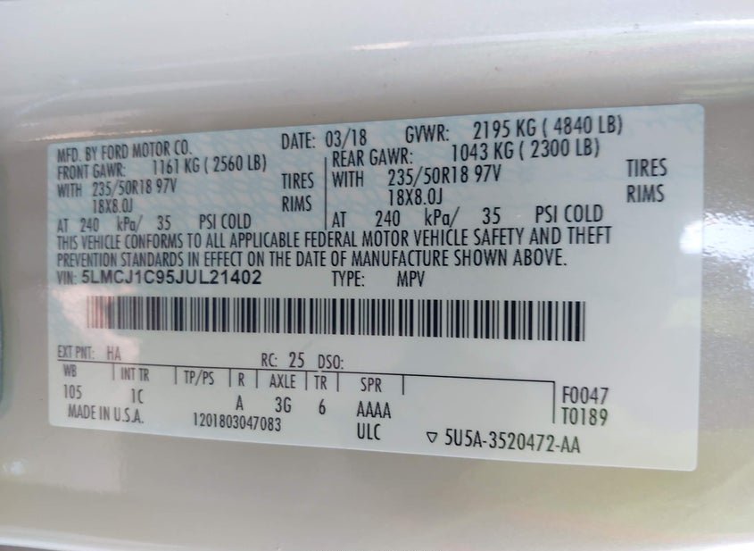 - VIN: 5LMCJ1C95JUL21402