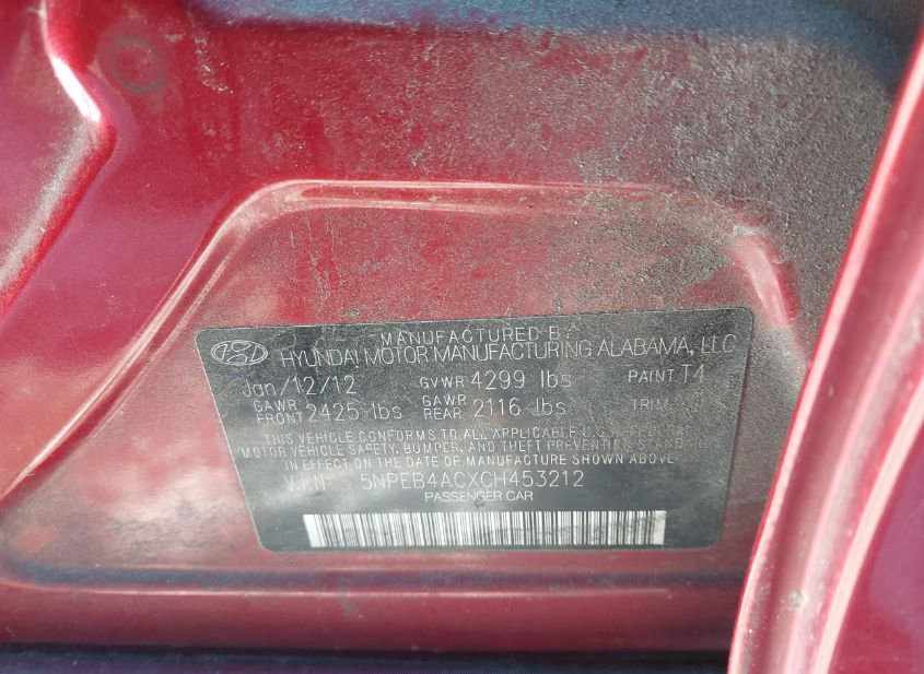 - VIN: 5NPEB4ACXCH453212
