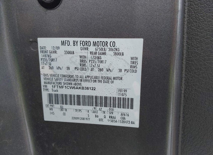 - VIN: 1FTMF1CW6AKB38122