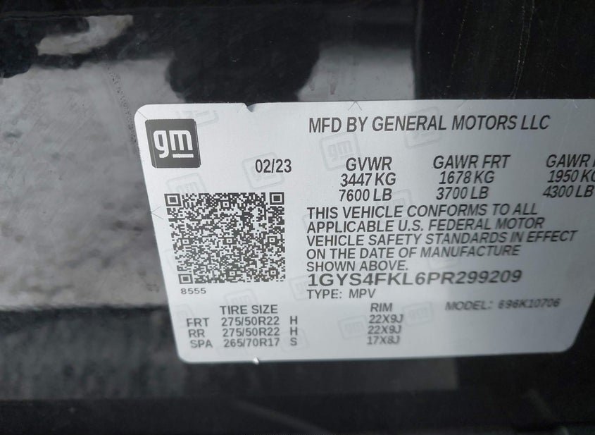 - VIN: 1GYS4FKL6PR299209