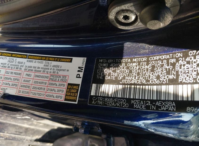 - VIN: JTDS4RCE9LJ036731