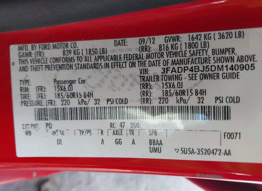 - VIN: 3FADP4BJ5DM140905