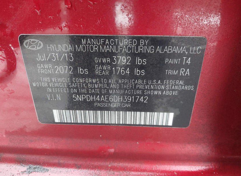 - VIN: 5NPDH4AE6DH391742
