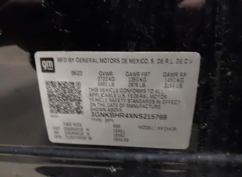 - VIN: 3GNKBHR4XNS215769